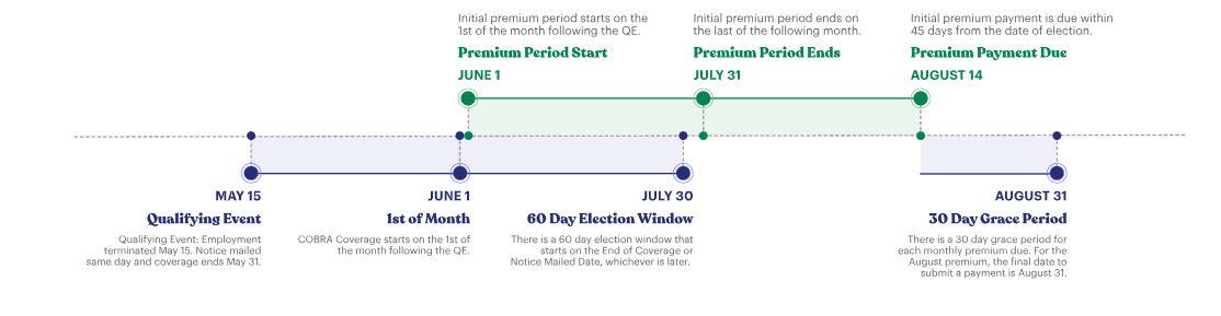 *These reflect maximum continuation coverage periods for most cases. Coverage may be eligible for extension in some cases as a result of a second event or disability. Coverage may also be terminated in advance of the full coverage period being exhausted.