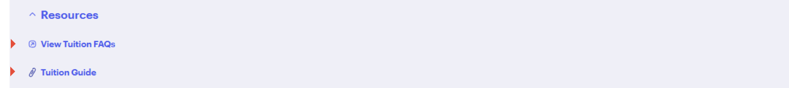 4. From here, you can select 'View Tuition FAQs' to open our support center for common tuition articles, or select 'Tuition Guide' to download your program specific Plan Document.