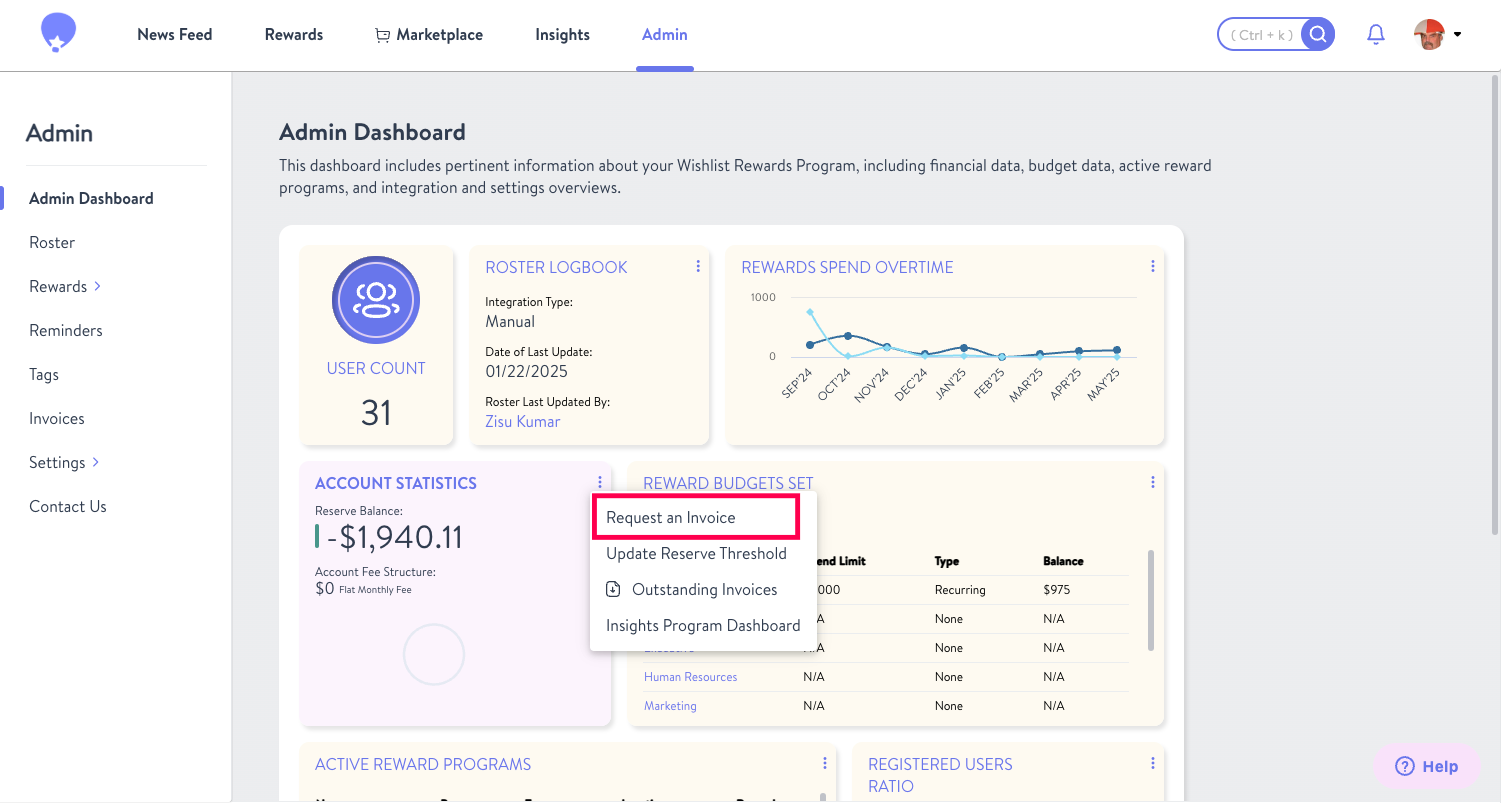 You can also request an invoice through your Admin Dashboard. You can do this by...