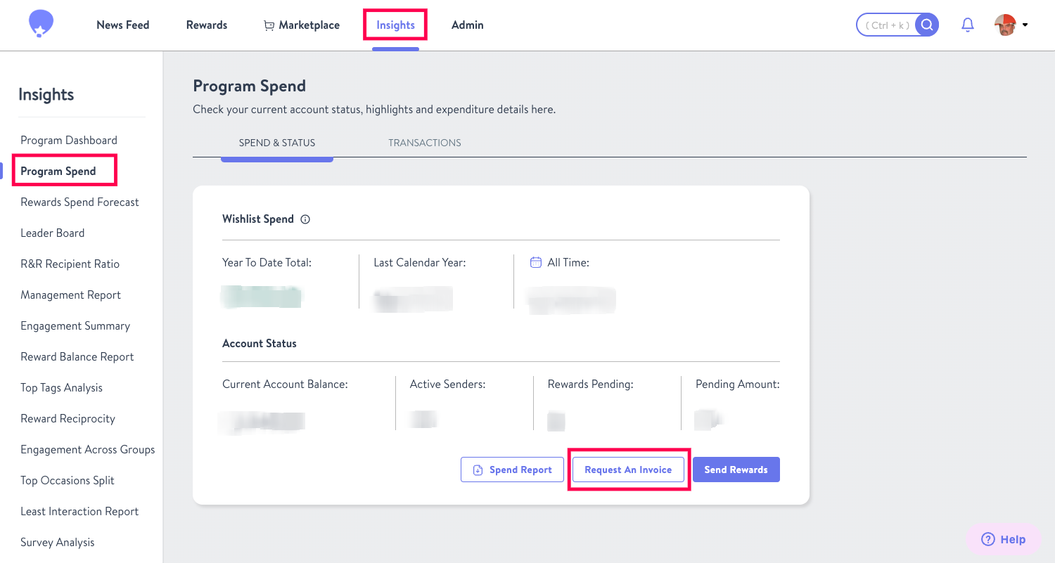 - Navigate to the Insights page and then to the Program Spend tab.