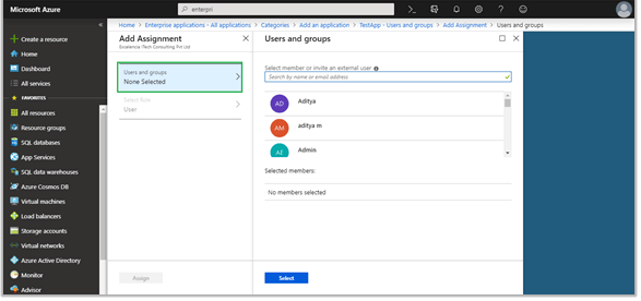f. Select “Users and Groups” and add any or all members from the list. Only the users added in this step can use this app for SSO.