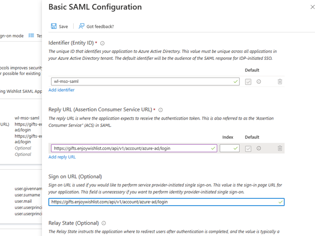 Sign on URL -> https://gifts.enjoywishlist.com/api/v1/account/azure-ad/login