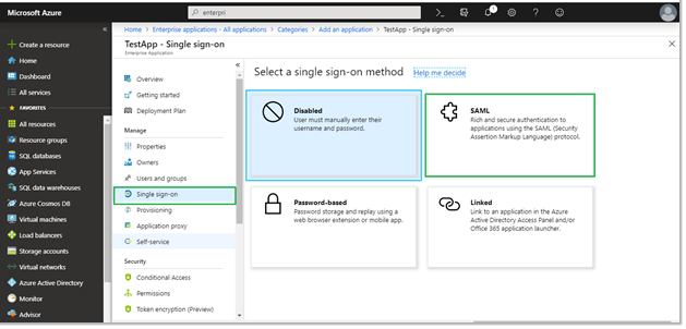 g. Click on the Single Sign-on tab on the left side of the panel and choose the SAML method.