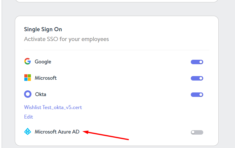 Under the Single Sign-On section look for Microsoft Azure Ad and start the process by toggling the slider.
