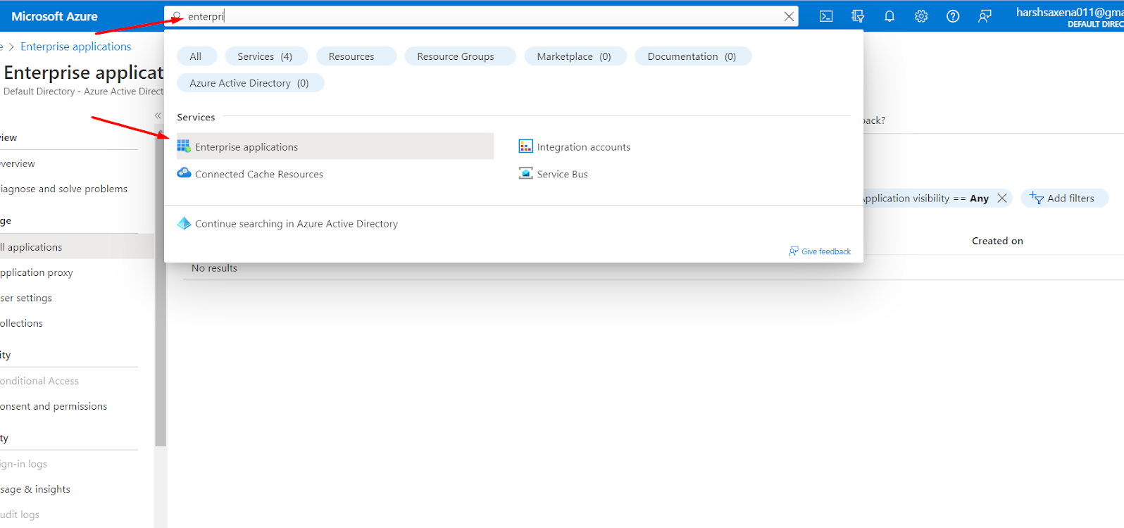 Type “Enterprise applications” in the search box and select it. You will be redirected to the “New Application” page.