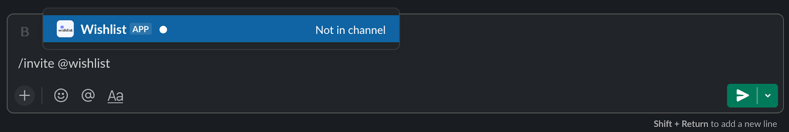 Step 2: Invite the Wishlist Slack bot to the channel with the /invite @wishlist command