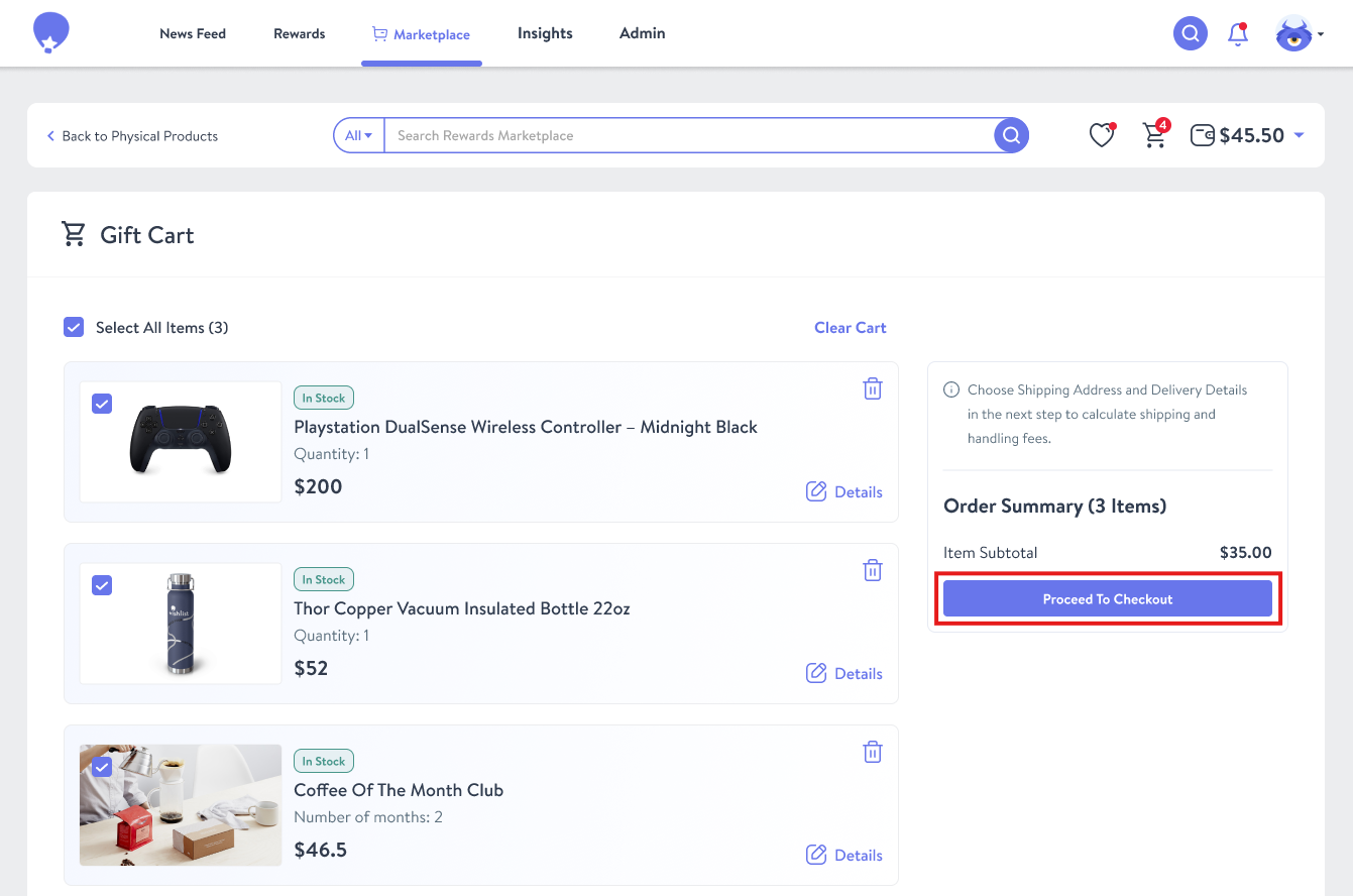 - Click "Proceed to Checkout" to begin.