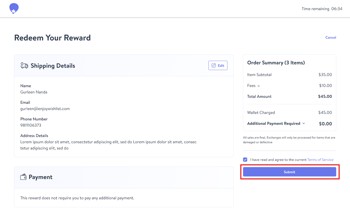 - Click "Submit" to finalize your purchase.