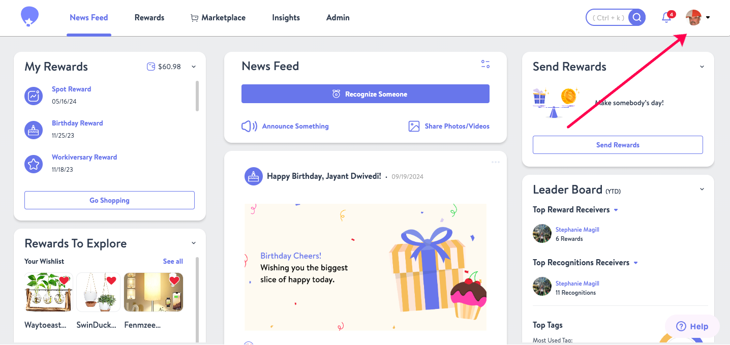 - Once logged in, click on your profile picture in the top-right-hand corner of the Wishlist screen.