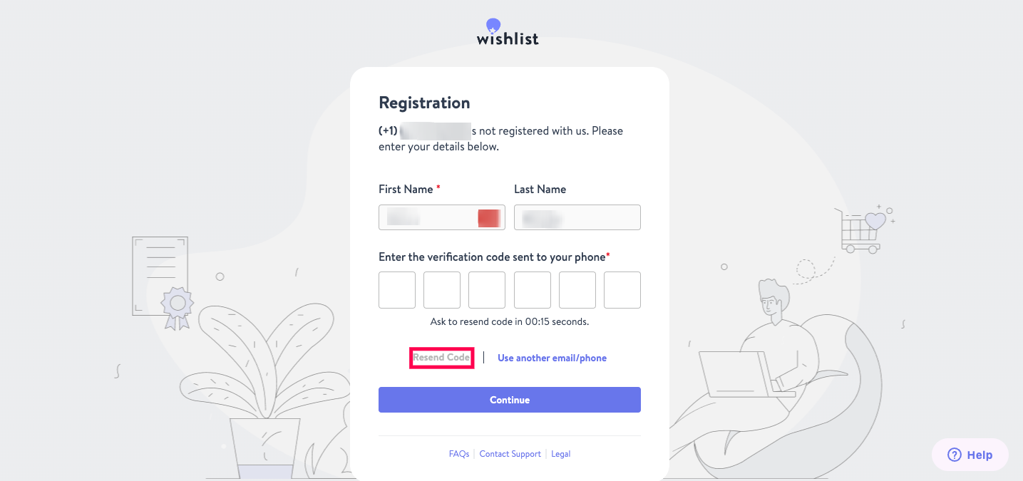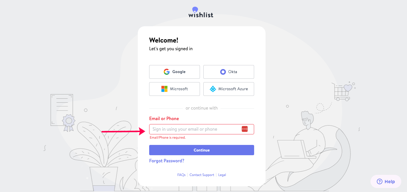 - Type in your phone number in the prompted field on the Wishlist login page.