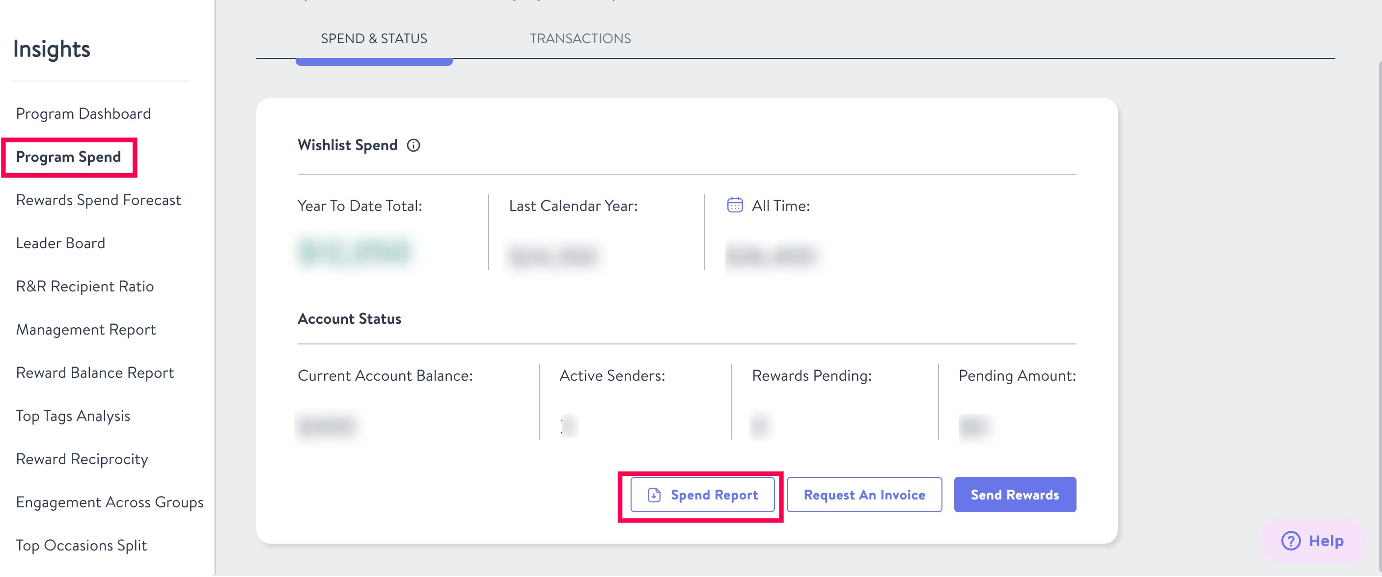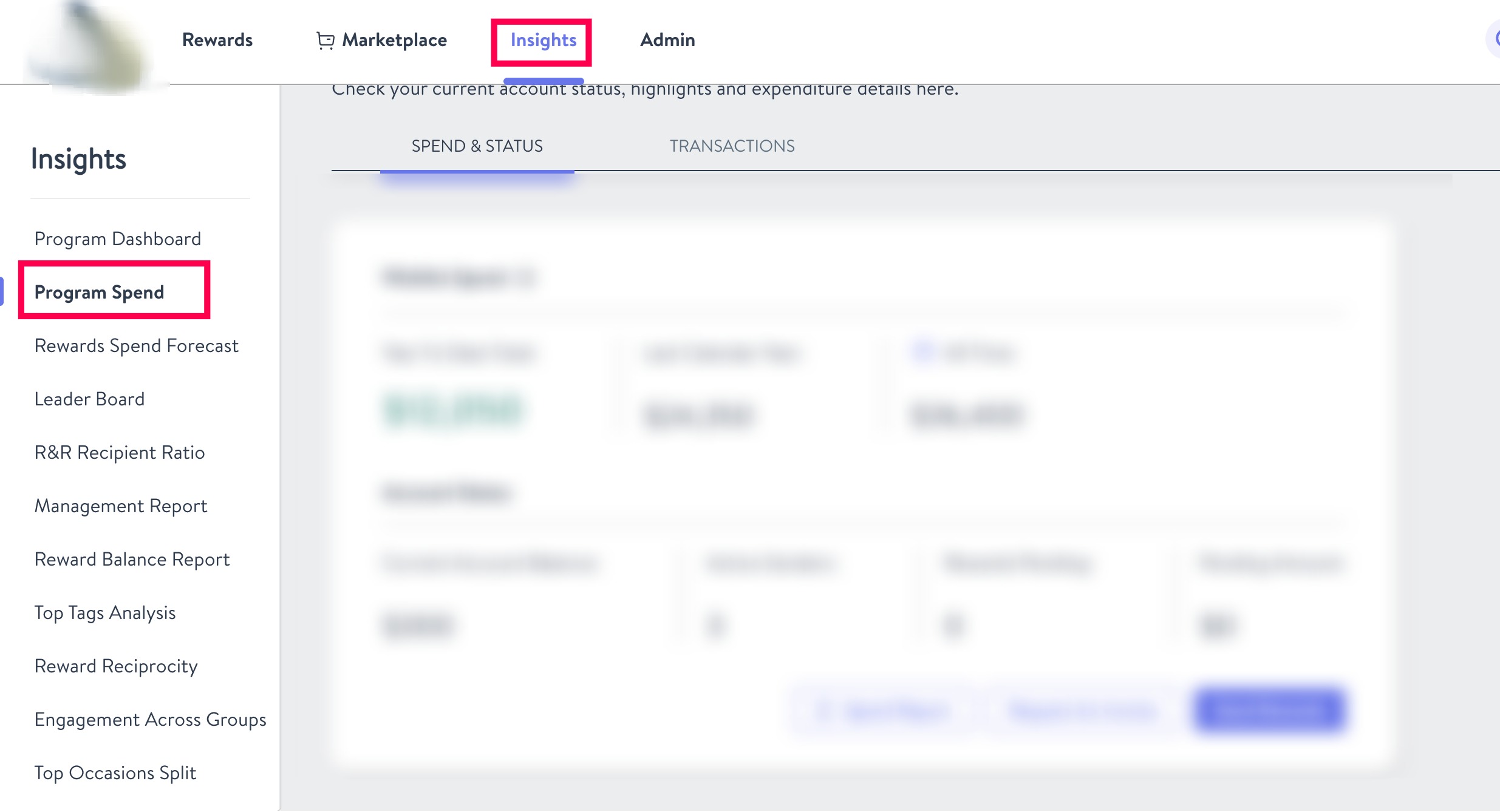 For each, navigate from the Insights Program Dashboard to Program Spend